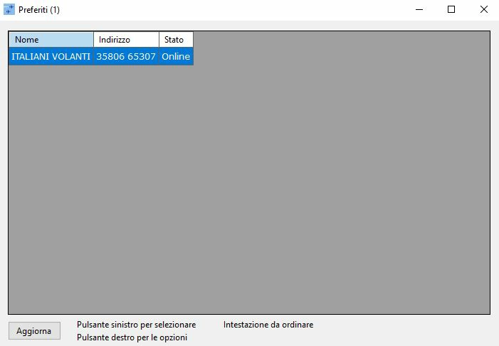 La rubrica “File>Rubrica” è il luogo in cui è possibile gestire gli indirizzi salvati. È l’ideale quando ci si connette regolarmente a un altro client o hub. Ad esempio, se si vola con un club o spesso con gli amici, l’aggiunta di un indirizzo consente di collegarsi rapidamente in qualsiasi momento. È possibile partecipare a una sessione, modificare, rimuovere o aggiungere un indirizzo utilizzando il menu di scelta rapida.